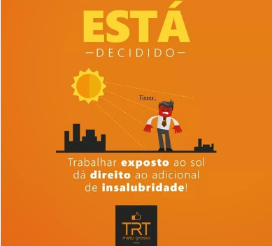 Portal TRT - O trabalho de carpintaria na construção de um resort próximo a lagoa do Manso (129km de Cuiabá) mantinha um profissional exposto ao sol durante toda a sua jornada. Como a exposição ao calor ultrapassou os limites de tolerância estabelecidos em norma de segurança no trabalho, o Tribunal Regional do Trabalho de Mato Grosso (TRT/MT) determinou o pagamento de adicional de insalubridade.